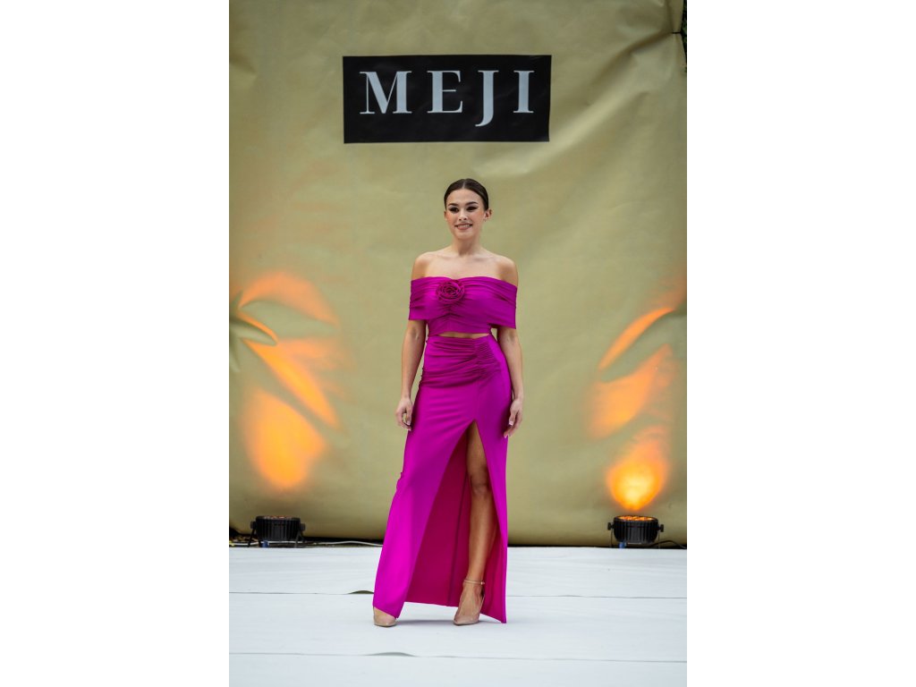 Set tmavě růžové dlouhé sukně a topu Meji ve velikosti S/M je sofistikovanou volbou pro společenské události s dress codem black tie. Dlouhá sukně se sexy rozparkem působí elegantně a smyslně, zatímco top v totožném odstínu podtrhuje ženskou siluetu. Intenzivní růžová barva dodává outfitu energii a odvahu. Ideální pro večery, kde chcete zazářit sebevědomým stylem.