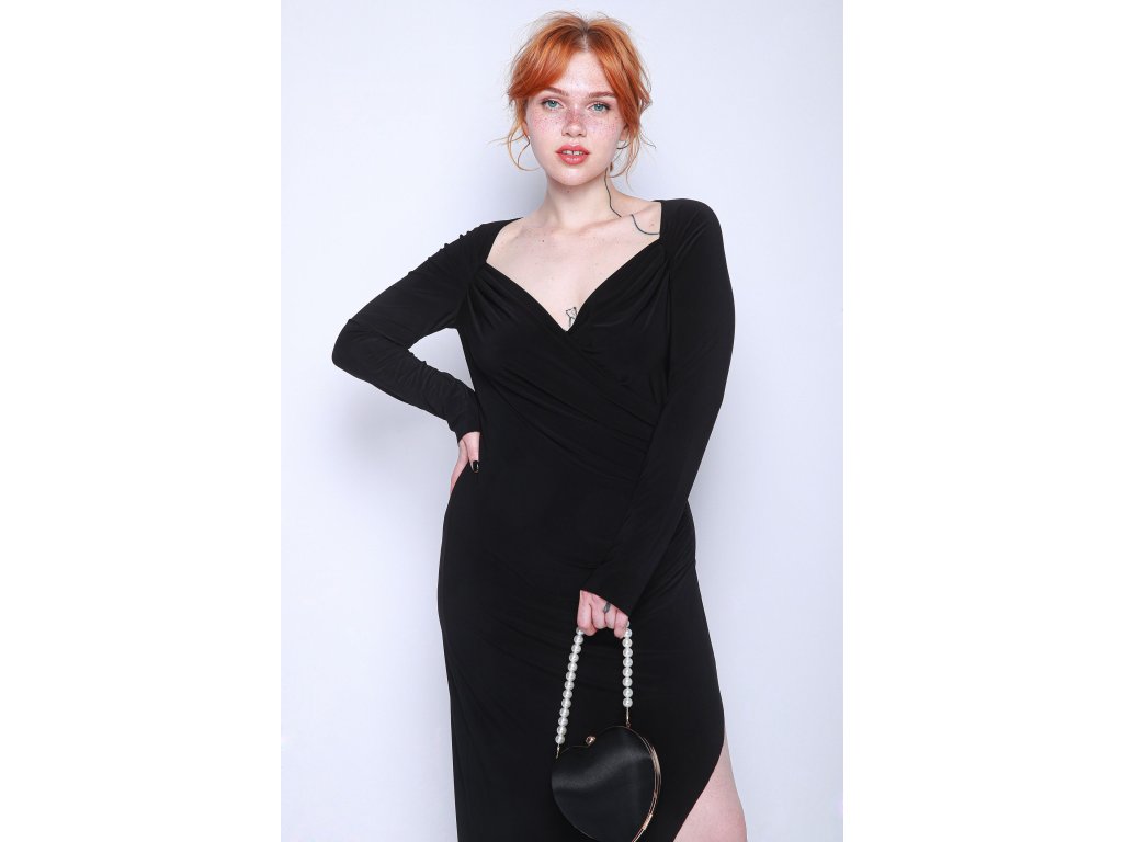 Společenské černé šaty Norma Kamali ve velikosti L/XL představují nadčasovou eleganci v moderním pojetí. Midi délka a hlubší výstřih s dlouhými rukávy vytváří dokonale vyvážený kontrast mezi svůdností a sofistikovaností. Černá barva podtrhuje univerzálnost modelu a dělá z něj ideální volbu na koktejlové večírky, společenské akce i formální setkání, kde chcete působit sebevědomě a stylově.