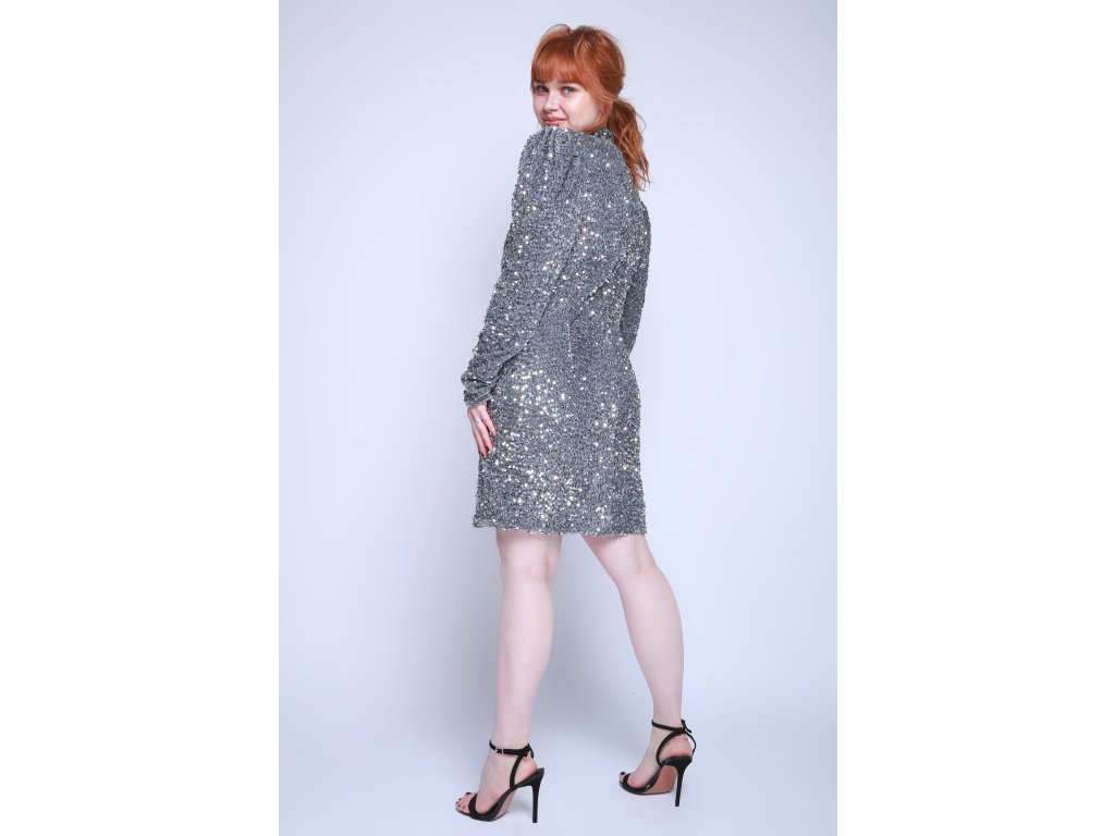 Stříbrné midi šaty The Dress s flitry ve velikosti XL/XXL. Elegantní model pro koktejlové akce, ve kterém zazáříte a budete nepřehlédnutelná.