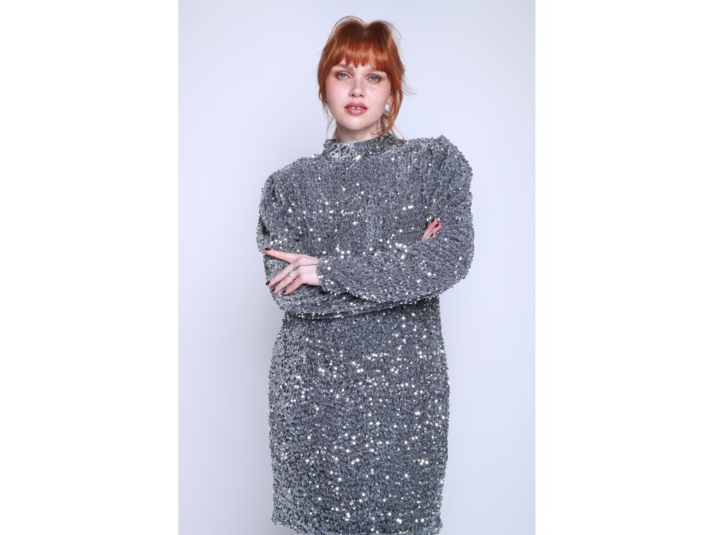 Stříbrné flitrové šaty The Dress ve velikosti XL/XXL jsou oslnivou volbou pro každou ženu, která chce vyniknout. Midi střih doplněný o třpytivé flitry působí elegantně a přitom hravě. Tyto šaty jsou ideální volbou pro koktejlové večírky, slavnostní příležitosti i večerní akce. Jejich výrazný třpyt vytváří dokonalý glamour efekt, díky němuž budete působit sebevědomě a šik. V těchto šatech si užijete každý okamžik, kdy budete v centru pozornosti.